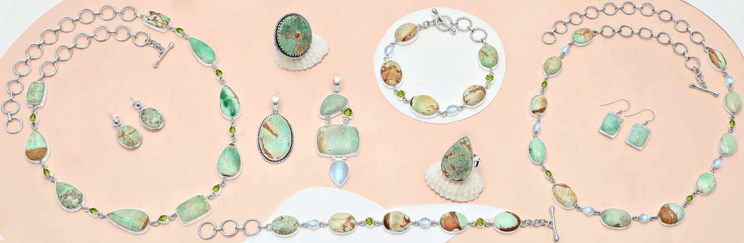 Variscite is a greenish-turquoise colored gemstone that is used to create the most desirable wholesale variscite jewelry collections. The greenish-blue color with brown-colored patterns on the surface makes it extremely attractive. This is especially loved by jewelry lovers who like to wear colorful gemstone jewelry. Variscite is a gemstone that was first discovered in 1837 and used to make jewelry from early times. With time, the popularity of wholesale sterling silver variscite ring collections increased, thus making it a trending gemstone. When the jewelry is created by Rananjay Exports, then the jewelry's authenticity and quality are the last things to be worried about. Also, we make the most beautiful jewelry for our natural wholesale variscite necklace collections.